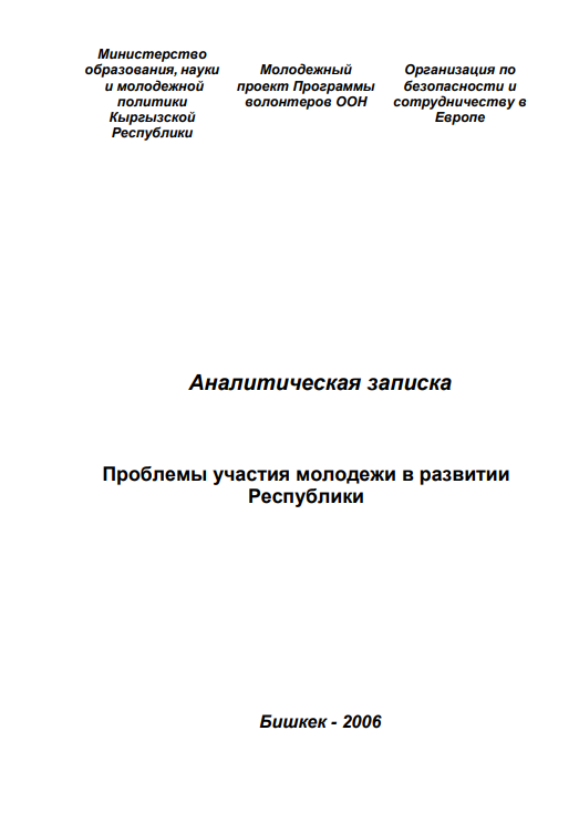 Проблемы участия молодежи в развитии республики: Аналитическая записка. – Бишкек, 2006. – 36 с.