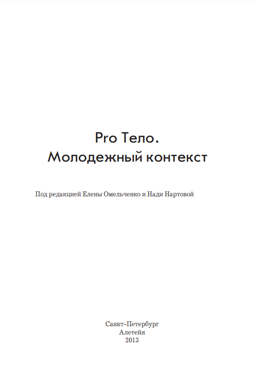 Pro Тело. Молодежный контекст / под ред. Е. Омельченко, Н. Нартовой. – СПб.: Алетейя, 2013. – 282 с.