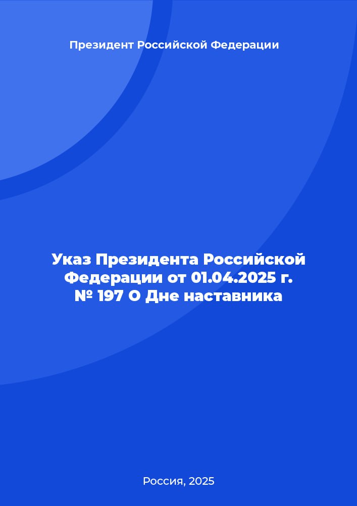 Указ Президента Российской Федерации от 01.04.2025 г. № 197 О Дне наставника